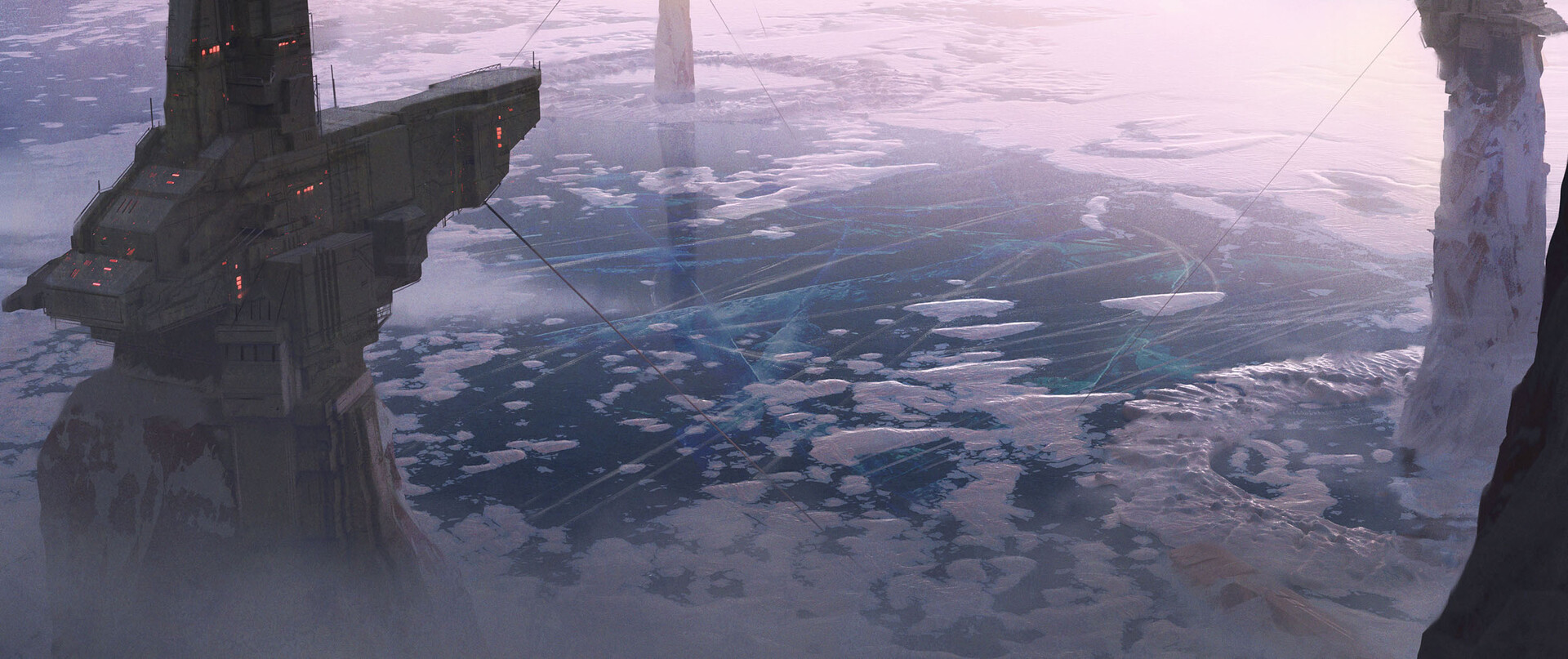 The Erebus Object is an ancient precursor ship, fractured in straight lines originating from the aft section. In the frozen engineering section of the this ship lies a partly desintegrated Zero Point Module, an effectively infinite energy source drawing power from a vacuum,