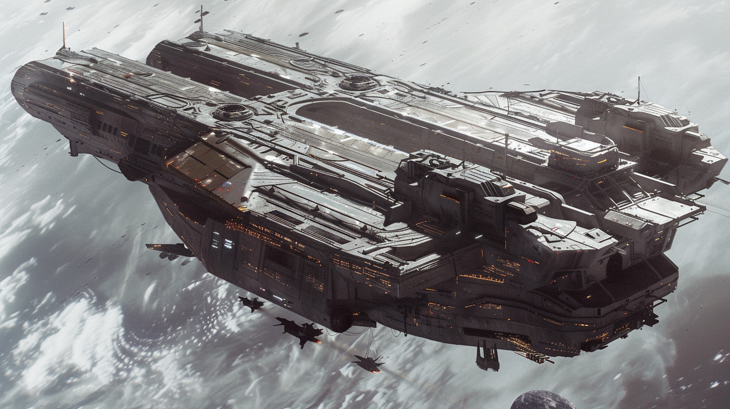 The Firewatch’s multiple hangars and runways allow it to rapidly deploy a variety of craft—ranging from troop transports and heavy cargo shuttles to VTOL gunships and atmospheric fighters. These bays are heavily reinforced, featuring magnetic clamps, pressurized docking seals, and advanced cargo management systems that swiftly cycle assets into combat or retrieval operations.